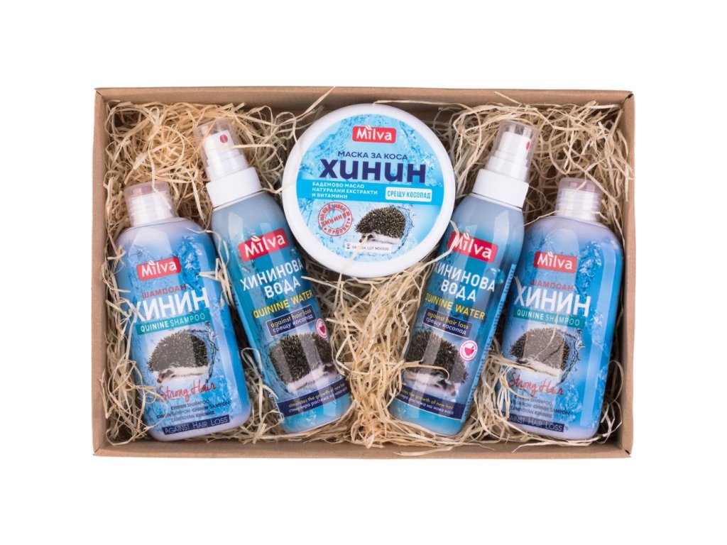 Darčeková sada kozmetiky chinín Chinínové prípravky sa najviac preslávili a osvedčili v boji proti vypadávaniu vlasov. Chinín preniká do vlasovej pokožky a prebudí a vyživí spiace folikuly. Stimuluje rast vlasov aj na miestach, kde rásť prestali. Spevňuje korienky a zabraňuje vypadávaniu, lámaniu a štiepeniu končekov. Kľúčovým faktorom k zdravým a hustým vlasom je výživa vlasov od korienkov. Vyskúšajte nové výhodne balenie pre vaše vlasy. Vhodný pre: sezónne aj dlhodobo vypadávajúce vlasy vypadávajúce vlasy na základe nedostatku dôležitých látok, hormonálnej nerovnováhy dlhodobo nerastúce vlasy slabé, riedke vlasy bez objemu Tip na používanie: Používajte šampón chinín 2-3x do týždňa a vodičku aplikujte vodičku ku korienkom vlasov. Výhodné balenie obsahuje: 2x Chinínový šampón 200 ml Šampón je vhodný proti vypadávaniu vlasov a na ich opätovný rast. Chinínový šampón má hlavnú učinnú látku chinín z kôry chinovníku. Chinín preniká do vlasov a urychluje ich mikrocirkuláciu čím urychluje prisun živin do vlasov. Znižuje alebo úplne zastavuje vypadávanie vlasov. Chinín je účinná látka, ktorá: Rýchlo preníká do vlasovej pokožky. Urýchľuje mikrocirkuláciu. Spevňuje vlasové folikuly. Stimuluje rast zdravých a silných vlasov. Znižuje alebo úplne zastavuje vypadávanie vlasov. Odporúča kombinovať s obľúbeným kondicionérom či maskou. 1x Chinínová maska na vlasy 250 ml Chinínová maska je určená na regeneráciu slabých a vyčerpaných vlasov. Pomáha bojovať proti lámaniu, lupinám, vypadávaniu, strate prirodzenej vlhkosti. Tým že preniká do vlasovej pokožky a do hĺbky poškodeného vlasu vie efektívne hydratovať a vyživovať. Taktiež reguluje sekréciu pri korienku. Dodá lesk a pružnosť vašim vlasom. Chinínová maska na vlasy je určená: Na regeneráciu problematických vlasov - vypadávanie, strata prirodzenej vlhkosti, lámavosť, lupiny. Prenikajúc do vlasovej pokožky a do hĺbky poškodeného vlasu, efektívne hydratuje a vyživuje. Reguluje sekréciu mazu pri korienku. Chráni vlasy pred chemickou úpravou. Dodáva vlasom pružnosť, objem, lesk. Robí ich jednoducho rozčesateľnými. Aplikácia: Naneste 30-50 ml masky na vlhké vlasy a vlasovú pokožku po umytí šampónom. Votrite do vlasovej pokožky a postupne rozneste po celej dĺžke - od korienkov po konce. Rozčešte vlasy veľkým hrebeňom alebo prstami. Po 15-20 min opláchnite vodou. Pre dlhodobý efekt opakujte procedúru raz týždenne. 2x Chinínová voda 200 ml Chinínová voda sa vstrebáva do pokožky hlavy a zaručuje stimuláciu krvného obehu, taktiež dokáže spevňovať vlasové folikuly a stimuluje rast vašich vlasov. Po použití vody sa vám zníži strata vlasov. Chinín je vhodný používať dlhodobo proti vypadávaniu vlasov a pre spevnenie vašich vlasov. Táto voda je ideálna pre poškodené a zničené vlasy a taktiež aj pre udržovanie vašich vlasov v kondícii. Vodu odporúčame hlavne na mastné nepoddajné a vypadávajúce vlasy. Výhody: znižuje vypadávanie vlasov, opäť naštartuje rast vašich vlasov, spevňuje vaše vlasy. Použitie: Aplikujte ju na suchú pokožku ku korienkom a neoplachujte.Dodatočné parametre