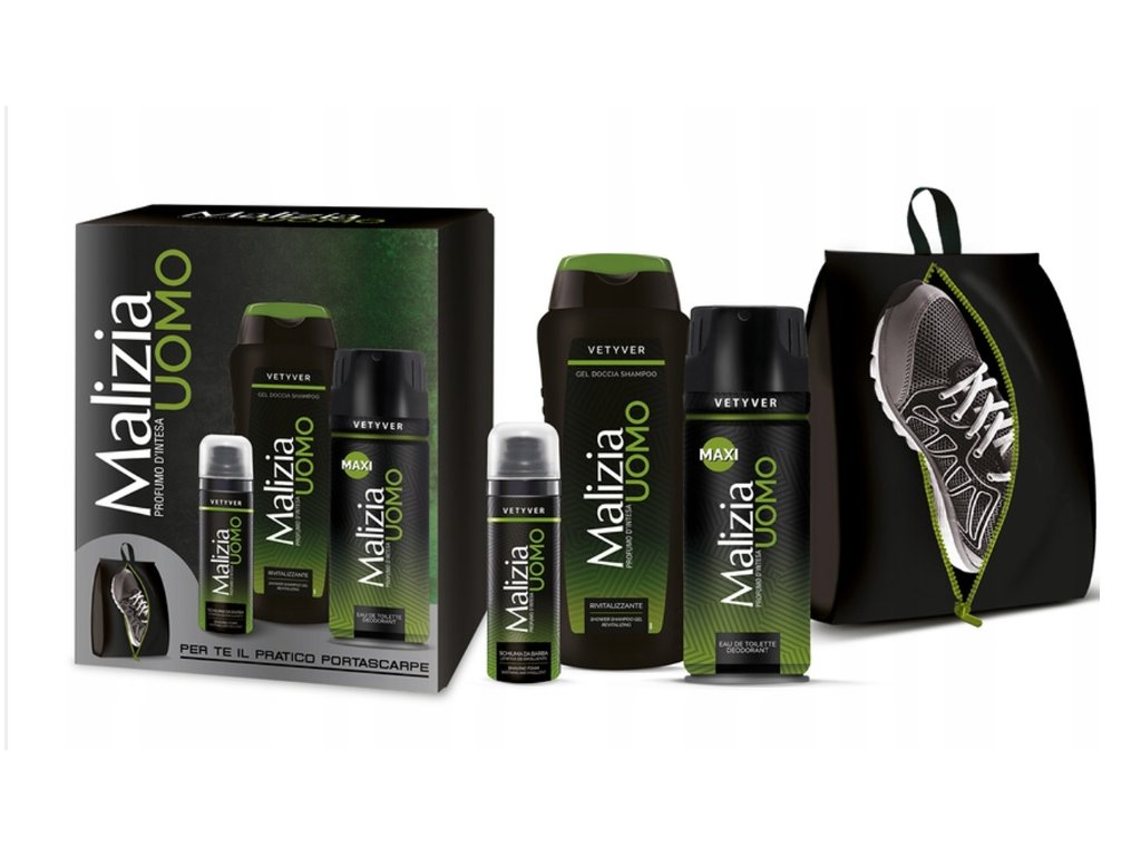 Darčeková sada MALIZIA UOMO VETYVER Dezodorant 175 ml + sprchový gél 250 ml + Pena na holenie 50 ml + Taška na topánky