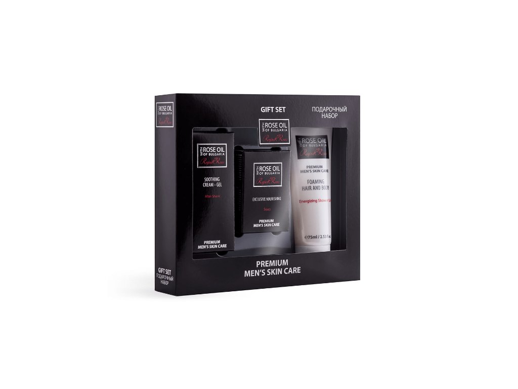 Darčekový set pre mužov s ružovým olejom - krém po holení, mydlo a sprchový gél Regina Roses