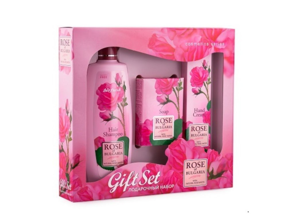 Darčekový set - šampón, mydlo a krém na ruky z ružovej vody Rose of Bulgaria Šampón na vlasy z ruží Obsahuje ružovú vodu a D-panthenol, ktoré vyživujú a hydratujú vlasy a dodávajú im lesk a hebkosť. Je vhodný pre všetky typy vlasov. Mydlo z ruží Obsahuje palmový a kokosový olej bez konzervačných látok, s glycerínom. Obsahuje jemné peelingové častice sušených ružových lístkov bulharskej ruže „ROSE DAMASCENA“. Krém na ruky z ruží Obsahuje ružovú vodu s antibakteriálnymi a upokojujúcimi účinkami.Dodatočné parametre