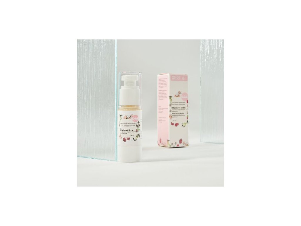 olej z malinových jadierok (organický, nerafinovaný) - zmierňuje ekzémy, svrbenie, začervenanie a zabraňuje prejavom starnutia. Je skvelým pomocníkom v boji proti vráskam či pri kožných problémoch (ekzémy, zápaly kože, začervenanie). Je bohatý na antioxidanty, vitamín E, či karotenoidy, vďaka ktorým zabraňuje starnutiu pokožky. Má veľmi silné protizápalové a antioxidačné účinky. Používa sa pri zmierňovaní ekzémov a svrbenia. Absorbuje časť UVA a UVB žiarenia, preto čiastočne zabezpečuje ochranu pred slnečným žiarením,