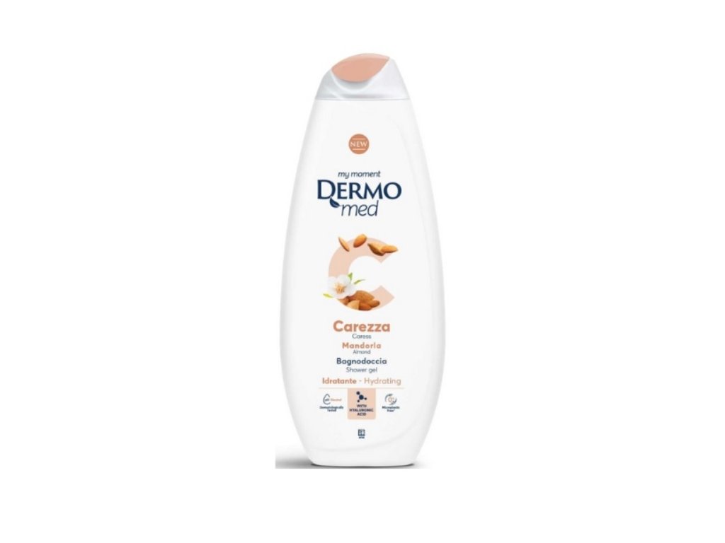Dermomed Carezza Almond – sprchový gél s kyselinou hyalurónovou a glycerínom s vôňou mandlí jemne umýva a ošetruje aj tú najjemnejšiu pokožku.