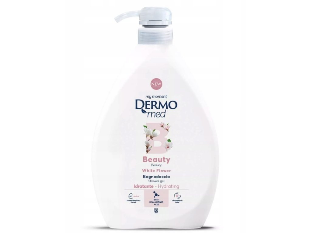 Hodvábne krémový, voňajúci jemnými bielymi kvetmi sprchový gél DERMOMED WHITE & FLOWER jemne umýva, ošetruje a chráni aj tú najjemnejšiu pokožku, vďaka čomu je voňavá, jemná a hodvábna. Produkt obohatený o jemnú vôňu bielych kvetov obklopuje pokožku sladkými, vzácnymi tónmi a zanecháva ju hodvábnu, hydratovanú a plnú lesku.