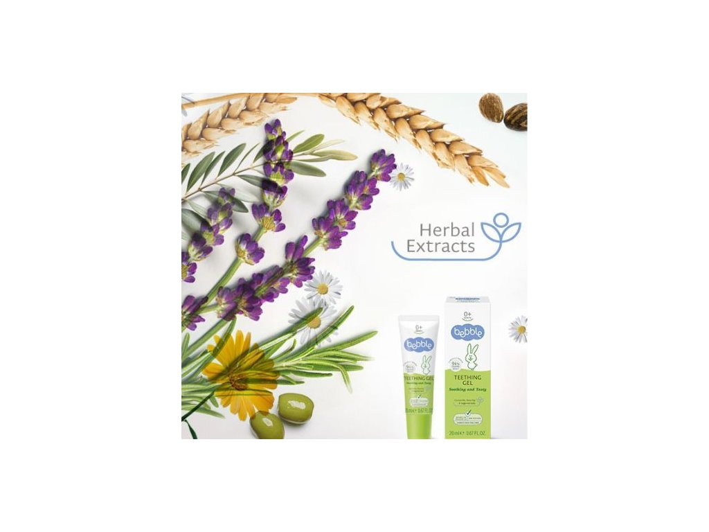 Detský gél s bylinnými extraktmi a upokojujúcimi prísadami okamžite zmierňuje ťažkosti a váš drobček sa bude cítiť lepšie už za pár minút. Čo je dôležitejšie, tento výrobok neobsahuje liečivo, a preto ho možno často používať bez obmedzenia dávkovania. Vďaka extraktu zo šípky, bohatého na vitamín C, pomáha hojiť rany, obnovuje bunky a stimuluje ich produkciu. Výťažok z harmančeka obsahuje aktívne flavonoidy a zlúčeniny éterického oleja, obzvlášť prospešné pre citlivú pokožku. Pôsobí protizápalovo a účinne bojuje proti voľným radikálom. Extrakt zo šalvie má antibakteriálne, antioxidačné, protizápalové a sťahujúce vlastnosti, a navyše účinne upokojuje a regeneruje boľavú a infikovanú pokožku. Poslednou nemenej dôležitou zložkou detského gélu Bebble je extrakt zo stévie, ktorý pomáha vyrovnávať hladinu cukru v krvi a má protiplesňové a antimikrobiálne vlastnosti. Gél na zuby Bebble pomáha zmierňovať začervenanie, opuchy, nadmernú tvorbu slín a bolesť.