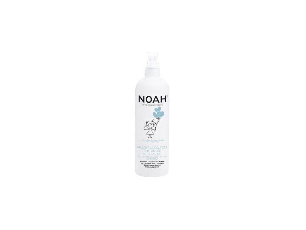 Detský kondicionér na rozčesávanie Noah 250ml Rozčesávanie jemných detských vláskov môže byť každodennou výzvou – no s detským kondicionérom od značky NOAH sa táto rutina zmení na príjemný a bezproblémový zážitok. Tento jemný bezoplachový sprejový kondicionér bol špeciálne vyvinutý pre potreby detských vlasov, ktoré sú často tenké, krehké a náchylné na zamotávanie. Jeho ľahké zloženie obohatené o mliečne proteíny a cukor napomáha udržať vlasy hebké, hydratované a ľahko rozčesateľné, bez toho, aby ich zaťažovalo. Mliečne proteíny vyživujú vlasové vlákna a podporujú ich pružnosť, zatiaľ čo cukor poskytuje prirodzenú hydratáciu a lesk. Kondicionér je ideálny pre dlhé, jemné alebo kučeravé detské vlasy, ktoré sa často uzlujú. Produkt je bez silikónov, parabénov, parafínu, minerálnych olejov, DEA a SLS, čo z neho robí šetrnú voľbu pre každodennú starostlivosť o vlásky tých najmenších. Navyše ide o profesionálny produkt, ktorý prináša výsledky viditeľné už po prvom použití. Benefity produktu: uľahčuje rozčesávanie bez ťahania a plaču, zanecháva vlasy jemné, lesklé a hydratované, špeciálne zloženie pre detské vlásky, bez škodlivých chemikálií a silikónov, profesionálna kvalita vhodná na každodenné použitie, vhodné pre všetky typy detských vlasov, najmä dlhé a jemné. Použitie: Po umytí vlasov šampónom z rovnakej línie nastriekajte kondicionér na vlhké vlasy. Neoplachujte. Následne vlasy jemne rozčešte hrebeňom. Možno použiť aj na suché vlasy počas dňa pre ľahšie rozčesanie. Upozornenie: Vyhnite sa kontaktu s očami. V prípade podráždenia prestaňte produkt používať. Uchovávajte mimo dosahu detí.Dodatočné parametre