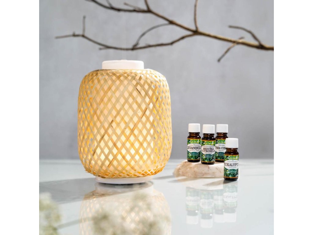 Ratanový aromadifuzér je štýlovým a účinným aromaterapeutickým pomocníkom do každej domácnosti. 100% prírodné éterické oleje/ zmesi 100% prírodných éterických olejov, pretvára ultrazvukovou difúziou na príjemnú hmlu pričom zachováva všetky terapeutické vlastnosti použitých esencií.Ultrasonický difuzér vás na prvý pohľad zaujme ratanovým opletením, pod ktorým nájdete ukrytú nádobku z mliečneho skla. Po jeho zapnutí cez obe vrstvy prepúšťa príjemné LED svetlo a dotvára relaxačnú atmosféru v miestnosti. Nakvapkajte do difuzéra ľubovoľne zvolený Saloos éterický olej a užite si chvíle pokoja. Čím si vás získa? Boho design: Dekor bieleho skla a ratanového opletenia perfektne zapadne do interiéru.Nastaviteľné podsvietenie: Jednoduchým stlačením tlačidla navolíte ideálne osvietenie.Ekologický materiál: Difúzér je vyrobený z mliečneho skla a ratanu.Funkcia 2 v 1: Ultrazvukový difuzér vytvára z vody a esencie jemnú hmlu, a tak čiastočne supluje zvlhčovač vzduchu. Vlastnosti a špecifikácie Hmotnosť: 446 gVýška: 190 mmŠírka: 135 mmObjem nádobky: 90 mlVýkon: 5 WDoba prevádzky: cca 4 hodinyFarba: biela/ratanNapájací kábel je súčasťou balenia. Ak sa v miestnosti nachádzajú deti do 3 rokov a tehotné ženy, upravte dávkovanie aj druh éterického oleja. Návod na použitie Naplňte vnútornú nádobku po rysku vodou a pridajte 2-5 kvapiek obľúbeného éterického oleja. Pomocou tlačidiel zvoľte intenzitu či farbu svetla a program difúzie.Dodatočné parametre