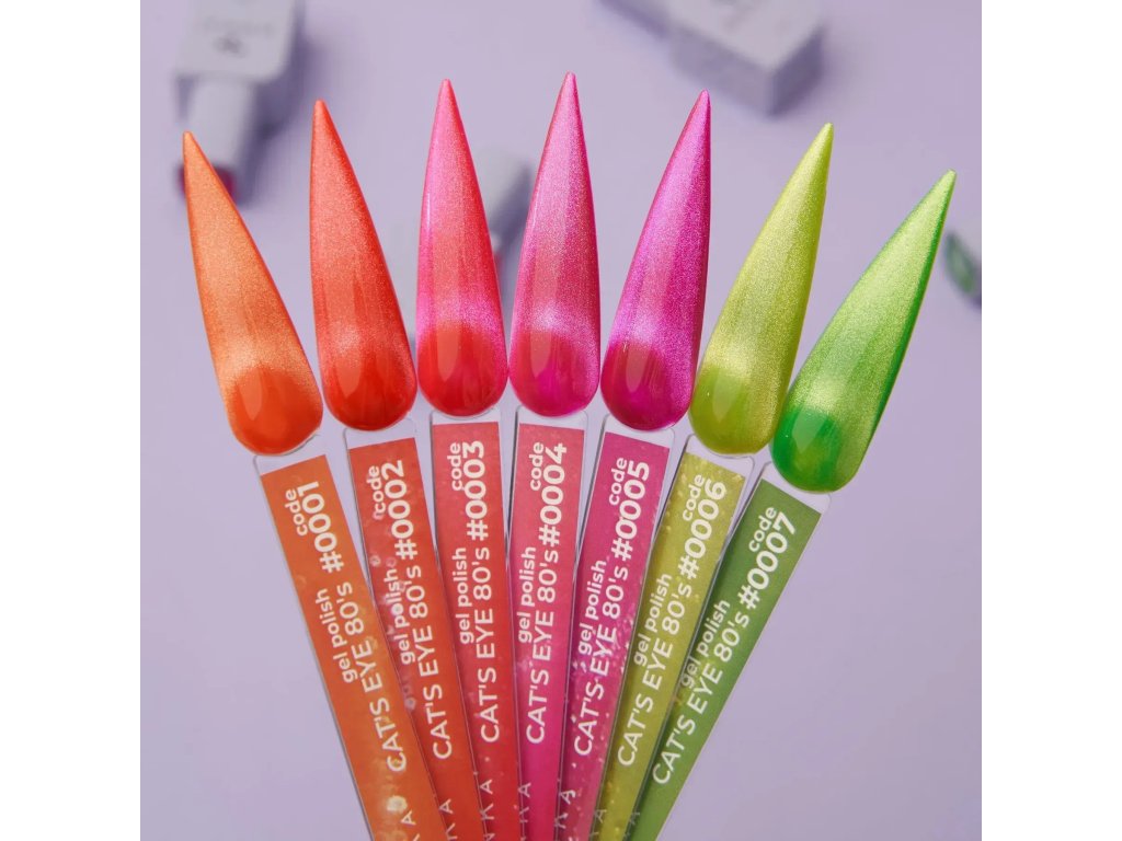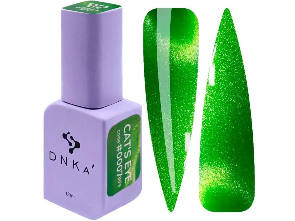 DNKa' Color Gel Polish Cat's Eye 0007 80's je kolekcia žiarivých gél-lakov s efektom mačacích očí a saténovým leskom, pripomínajúca farebné outfity z 80. rokov. Táto jedinečná kolekcia žiari v tme a vyzerá jednoducho úžasne. Laky z tejto rady vyzerajú nádherne s magnetickým efektom aj bez neho. Sú vysoko pigmentované a nevyžadujú tmavý podklad, no napriek tomu vytvárajú nádherný efekt, keď sa nanesú na bežný gél-lak v odtieni podobnom farbám z tejto kolekcie. Použitie: 1. Naneste DNKa' Dehydrator na zmatnený, vyčistený povrch nechtov.2. Pre lepšiu priľnavosť naneste raz primer DNKa' Ultrabond.3. Naneste DNKa' Multi Base/Low Acid Base/Rubber Base/Fiber Base a vytvrdzujte v 48/36 W LED/UV lampe po dobu 30/60 sekúnd.4. Naneste 1 rovnomernú vrstvu gél-laku DNKa' a vytvrdzujte v LED/UV lampe s výkonom 48/36 W po dobu 60/120 sekúnd, v závislosti od pigmentácie produktu.5. Pre sýtejší farebný náter sa odporúča naniesť druhú vrstvu s ďalšou polymerizáciou.6. Prekryte vybraným vrchným lakom DNKa' a vytvrdzujte v LED/UV lampe s výkonom 48/36 W po dobu 120/180 sekúnd pre dokonalý efekt.7. Odstráňte farbu gél-laku odstraňovačom gélu alebo pilníkom. Objem: 12mlDodatočné parametre