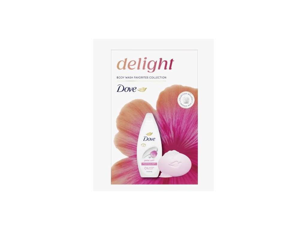 Dove Delight dámsky darčekový set 3ks obsahuje sprchový gél Petal Soft 250ml+tuhé mydlo Pink 90g+hubka na umývanie.Dodatočné parametre