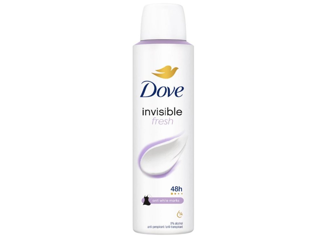 Dove deo poskytuje ochranu pred potom a nepríjemným zápachom až 48 hodín. Mäkká a hladká pokožka pod pazuchami: antiperspirant pre ženy Dove sa skladá z 1 hydratačného krému, ktorý ošetruje pokožku pod pazuchami. Dlhodobá sviežosť: vďaka účinnej formule a dlhotrvajúcej vôni.Ochrana pred škvrnami: Formulácia Invisible pomáha predchádzať vzniku bielych stôp na čiernom oblečení a žltých škvŕn na bielom.Objem balenia 150ml.Dodatočné parametre