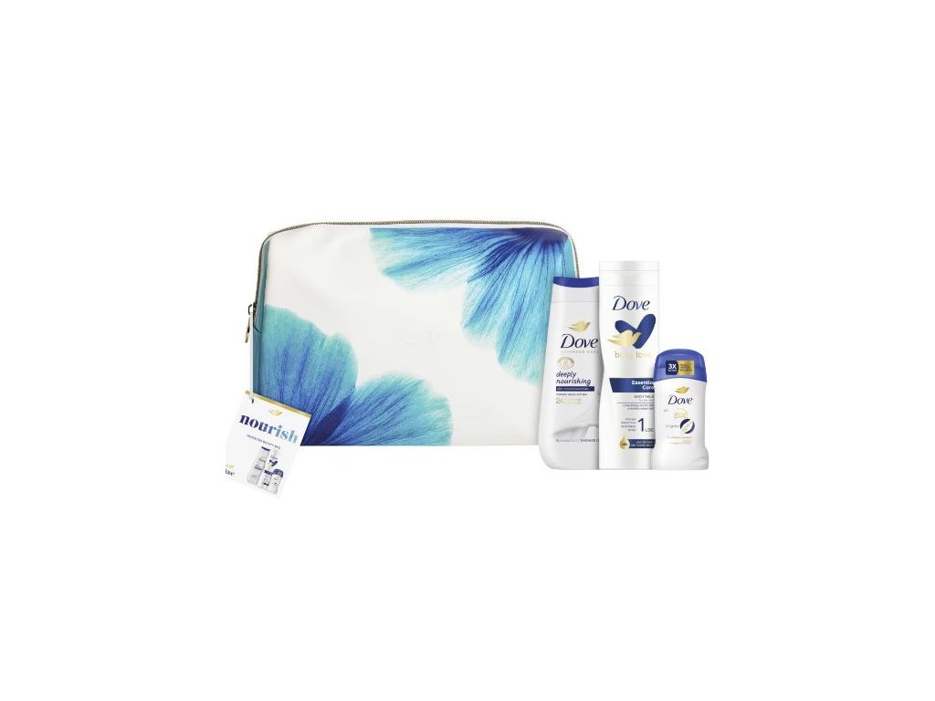 Dove dámsky darčekový set obsahuje sprchový gél Original 225ml +telové mlieko Esential 250ml+tuhý stick Original 50ml+kozm.taška.Dodatočné parametre
