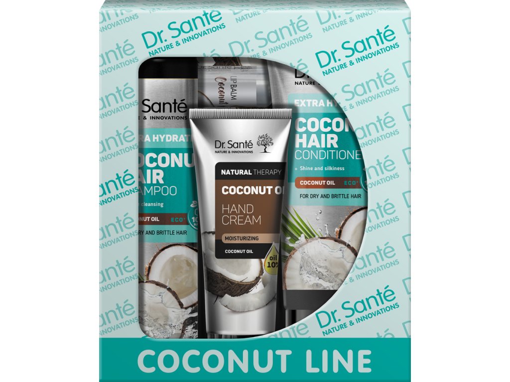 Darčeková sada na hydratáciu krehkých vlasov Dr. Santé Coconut obsahuje: Hydratačný šampón pre krehké a suché vlasy Dr. Santé Coconut - 250 ml Hydratačná starostlivosť pre krehké a suché vlasy Dr. Santé Coconut - 200 ml Krém na ruky s kokosovým olejom Dr. Santé Coconut - 75 ml Balzam na pery s kokovosým olejom Dr. Santé Coconut - 3,6 gDodatočné parametre