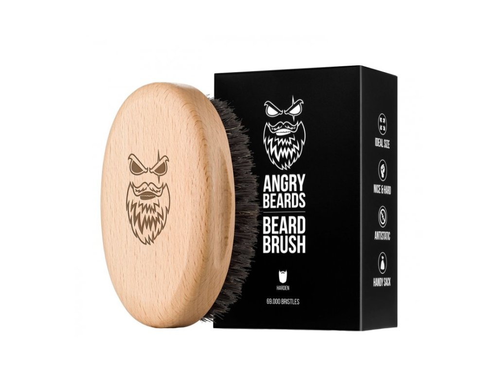 Drevená kefa na bradu ANGRY BEARDS Harden s kančími a syntetickými štetinami je určená na dlhšie fúzy. Rozčesáva fúzy od korienkov až po končeky. Tvrdšie štetiny kefy Harden než jej mäkší brat Gentler.