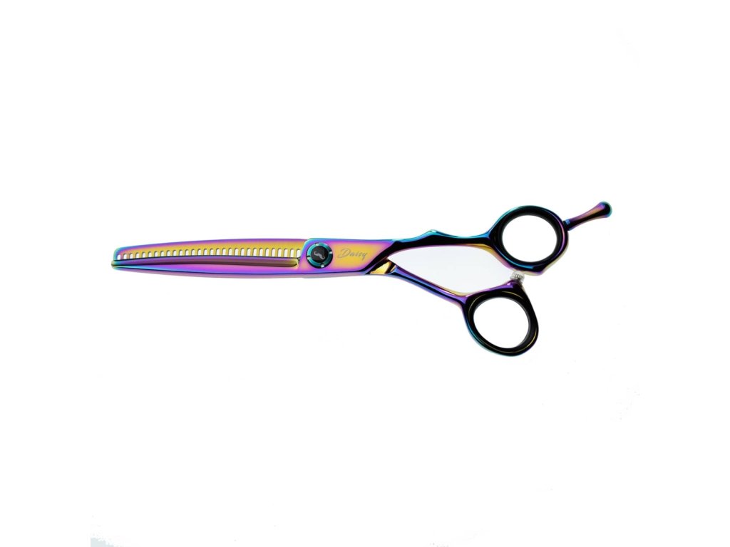 Profesionálne efilačné nožnice Mr. Mustache Daisy z VG10 japonskej ocele ponúkajú precízny strih, mimoriadnu ostrosť a elegantný dizajn. Vďaka titánovému povlaku sú mimoriadne odolné. Ergonomické s 23 zubami poskytujúcimi dokonalý efilačný výkon. 5-ročná záruka kvality.