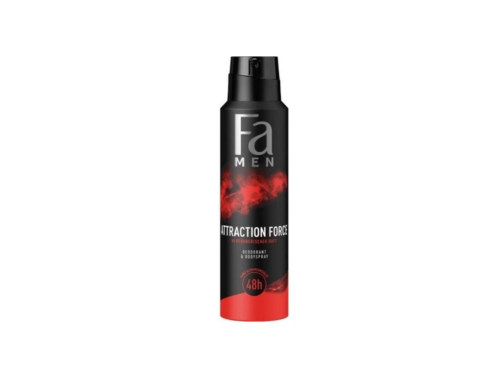 Fa Men Attraction Force je pánsky dezodorant sprej navrhnutý pre mužov, ktorí chcú spoľahlivú ochranu a zároveň jemný, no zvodný pocit. Vďaka unikátnemu zloženiu s feromónmi poskytuje až 48 hodín ochrany proti poteniu a telesnému zápachu. Jemná pánska vôňa, ktorá podporuje sebavedomie a osobný magnetizmus.Dodatočné parametre