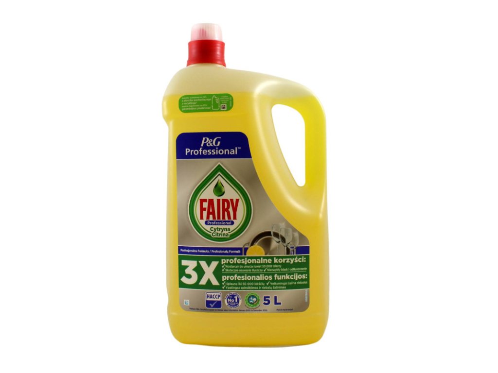 FAIRY Professional prostriedok na riad - citrón 5L Prostriedok na ručné umývanie riadu FAIRY Professional Citron je vhodný na všetky druhy riadu od nerezu až po porcelán. Má vynikajúci odmasťovací účinok a efektívne odstraňuje zvyšky potravín z hrncov, panvíc, príborov, tanierov a ostatného kuchynského vybavenia. S príjemnou vôňou citrónu. V ekonomickom 5l balení. Použitie: Ručné umývanie riadu Cena za 1ks/5L
