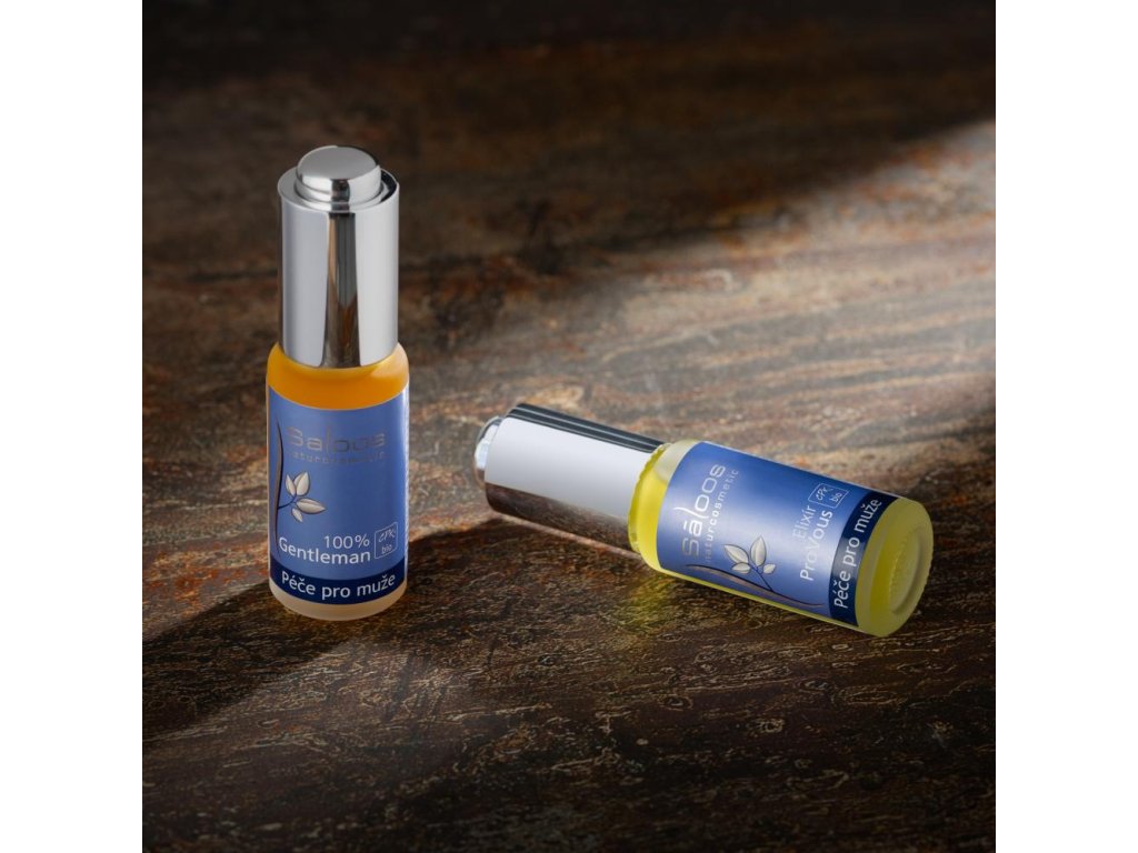 SALOOS Anti-Aging elixír 100% Gentleman obsahuje unikátnu patentovanú látku LIFE Oleobooster®, ktorá zabezpečuje ochranu mitochondrií. Mitochondrie sú membránové bunkové organely, ktorých prvoradou úlohou je produkovať pre telo energiu.LIFE Oleobooster® udržiava optimálnu úroveň energie v bunkách, podporuje kolagénovú štruktúru pleti a minimalizuje príznaky únavy. Extrakt zo stevie sladkej s antibakteriálnymi a antioxidačnými účinkami pôsobí na unavenú pokožku ako tonikum.Elixír obsahuje tiež BIO konopný olej, ktorý je bohatý na esenciálne mastné kyseliny a obsahuje veľa prospešných látok. Má vynikajúce regeneračné schopnosti a zabezpečí dokonalú starostlivosť o citlivú a inak problematickú pleť.Pôvabnú, jemnú a mužskú vôňu dodáva prípravku éterický olej ravensara. Má antiseptické a dezinfekčné účinky a zároveň stimuluje psychiku. Pomáha s koncentráciou, zmierňuje stres a dodáva odvahu. Ravensaru dopĺňa skvelá osviežujúca vôňa grapefruitu, v kombinácii s kadidlom a douglaskou. Éterický olej z kadidlovníka pomáha vyhladzovať jemné stopy po akné a iných nedokonalostiach pleti. Douglaska je známa predovšetkým pre svoje antibakteriálne účinky a schopnosť podporovať obnovu buniek. Návod na použitie Pre maximálny účinok používajte ráno a večer. Naneste 2- 3 kvapky na vyčistenú pleť a jemne vmasírujte do pokožky. Nezanecháva pocit mastnoty. Úplne nahradí klasické krémy. Nie je potrebná následná starostlivosť. Vhodné na ošetrenie pleti po holení. Naneste 2- 3 kvapky na pleť po holení a jemne vmasírujte do pokožky. Nezanecháva pocit mastnoty.Dodatočné parametre