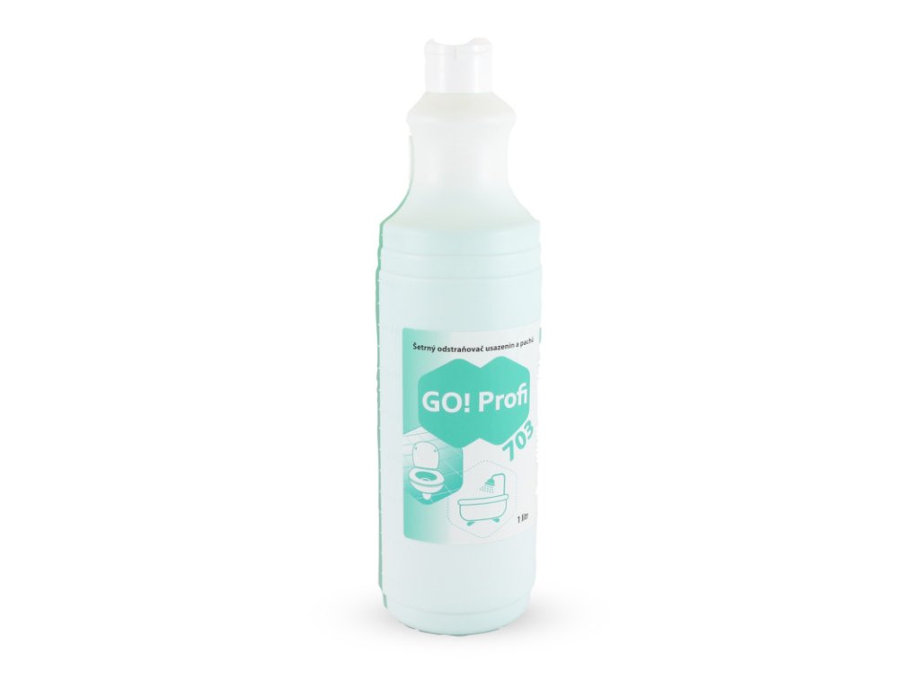 PROFI 703 Šetrný, profesionálny kyselinový čistič s obsahom kyseliny citrónovej vhodný na toalety, pisoáre, kúpeľne. Dobre odstraňuje vodný a močový kameň a s ním súvisiace zápach, hrdzu a iné pre toalety bežné usadeniny. Má mierny dezinfekčný účinok a dobrý dezodoračný účinok. Prípravok je pre profesionálne použitie. Dávkovanie: Používa sa v riediacim pomere 1: 1, až 1:20, v závislosti na miere znečistenia a technológii čistenie. Pri ručnom čistení sa nanáša na znečistené miesta pomocou WC štetky alebo hubky, nechá sa pôsobiť, následne sa opláchne vodou. Pri čistení kotúčovým strojom sa používa nižšia koncentrácia prípravku. Pri silných znečistených možno lokálne použiť koncentrát. Metódy použitia: ručné, strojné.