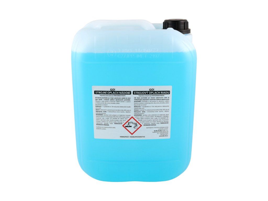 GO! Strojový oplach riadu 10l Kyslý prostriedok pre strojové OPLACHOVANIE RIADU do všetkých typov umývačiek s možnosťou aplikácie oplachovacích prostriedkov. Prostriedok sa tiež používa na odstránenie vodného kameňa a usadenín z lesklých povrchov, skla, nerezu, keramiky, plastu a pod. Nepoužívajte na mramor! Prostriedok je určený len pre profesionálne použitie. Dávkovanie: 1-3g prípravku na 1 liter vody pomocou dávkovacieho čerpadla alebo ručne. NEBEZPEČENSTVOI Dráždi kožu. Spôsobuje vážne poškodenie oči. Noste ochranné rukavice a ochranné okuliare. PRI KONTAKTE S POKOŽKOU: Umyte veľkým množstvom vody a mydla. PO ZASIAHNUTÍ OČÍ: Niekoľko minút ich opatrne vyplachujte vodou. Ak používate kontaktné šošovky a je to možné, odstráňte ich. Pokračujte vo vyplachovaní. Okamžite volajte TOXIKOLOGICKÉ INFORMAČNÉ CENTRUM Zloženie: menej ako 5%: aniónové povrchovo aktívne látky, EDTA a jej soli. Nebezpečné zložky: (2-butoxyethoxy)-octová kyselina, Alkylether karboxylová kyselina. Spotrebujte do 24 mesiacov od dátumu výroby uvedeného na obale.Dodatočné parametre