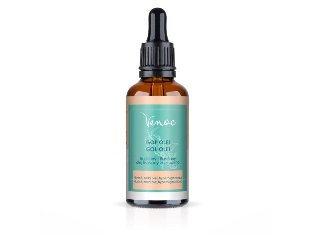 Goji olej Venoc 50ml Goji olej Venoc je ľahký prírodný pleťový olej určený pre mastnú a zrelú pleť so sklonom k hyperpigmentácii. Vďaka obsahu prirodzených antioxidantov pomáha chrániť pleť pred pôsobením voľných radikálov a predčasným starnutím. Podporuje zjednotenie tónu pleti, rozjasnenie mdlej pokožky a jemné zmäkčenie viditeľných nerovností. Textúra oleja je ľahká, dobre sa vstrebáva a nezaťažuje póry, takže je vhodný aj pre pleť so sklonom k nadmernej tvorbe mazu. Pri pravidelnom používaní dodáva pokožke pružnosť, komfort a zamatovo hebký pocit bez mastného filmu. Ak hľadáte prírodnú alternatívu ku ťažkým krémom, goji olej Venoc je ideálnou voľbou na každodennú starostlivosť. Olej je vyrobený z bio surovín najvyššej kvality, šetrne spracovaných tak, aby si zachovali maximum účinných látok. Benefity goji oleja Venoc: podporuje zjednotenie tónu pleti a zmiernenie vzhľadu hyperpigmentácie, pomáha rozjasniť unavenú, mdlú a sivastú pleť, prispieva k ochrane pleti pred oxidačným stresom a predčasným starnutím, dodáva pokožke pocit pružnosti, jemnosti a komfortu, rýchlo sa vstrebáva a nezaťažuje mastnú pleť, vhodný ako doplnok večernej rutiny aj pod denný krém či make-up. Použitie Nanášajte malé množstvo oleja (3–5 kvapiek) na vyčistenú, mierne navlhčenú pleť tváre, krku a dekoltu. Jemne vmasírujte, kým sa olej nevstrebe. Môžete ho používať samostatne alebo pridať pár kvapiek do obľúbeného pleťového krému či séra.Odporúča sa najmä na večernú starostlivosť o mastnú, zrelú pleť a pleť so sklonom k hyperpigmentácii. Pri lokálnych pigmentových škvrnách môžete olej jemne vklepať priamo na dané miesto. Upozornenie Len na vonkajšie použitie. Vyhýbajte sa kontaktu s očami. V prípade podráždenia prestaňte produkt používať. Uchovávajte mimo dosahu detí, na suchom a chladnom mieste, chránené pred priamym slnečným žiarením.Dodatočné parametre