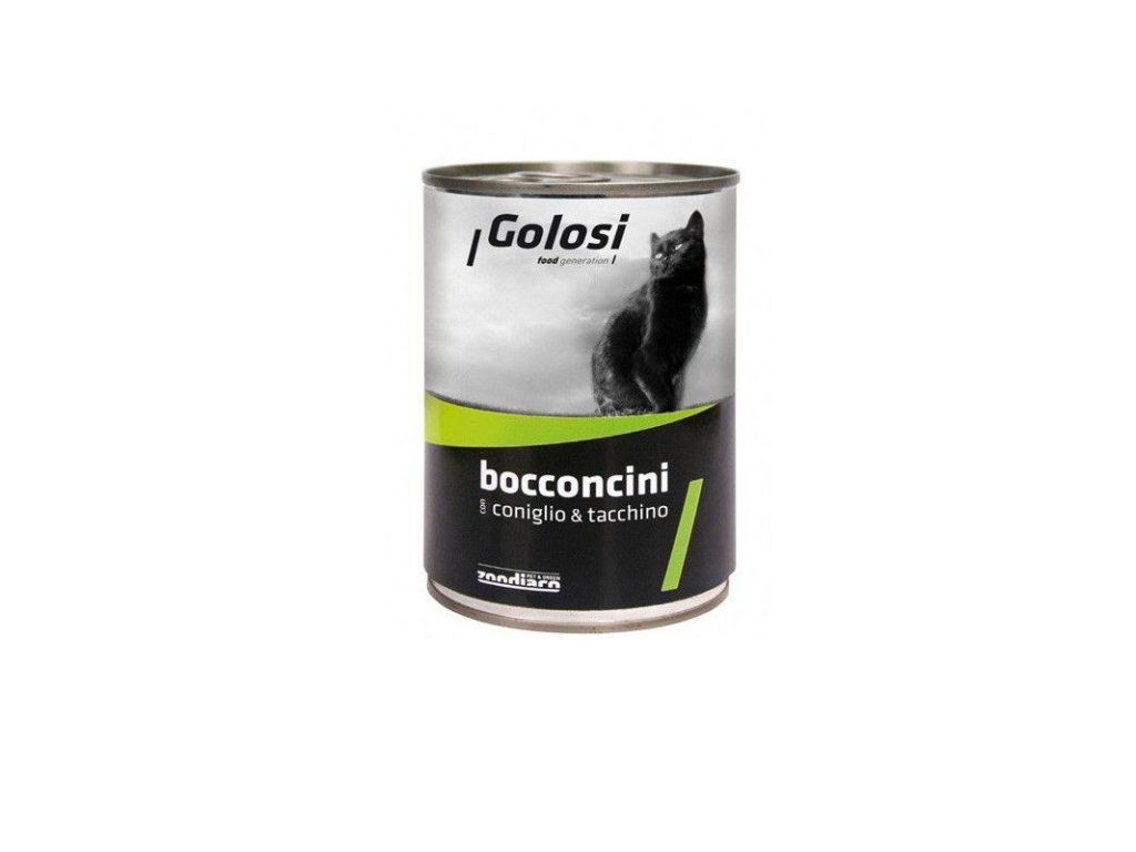 Golosi Bocconcini - králićie a morčacie s ryžou je kompletné krmivo pre dospelé mačky.Dodatočné parametre