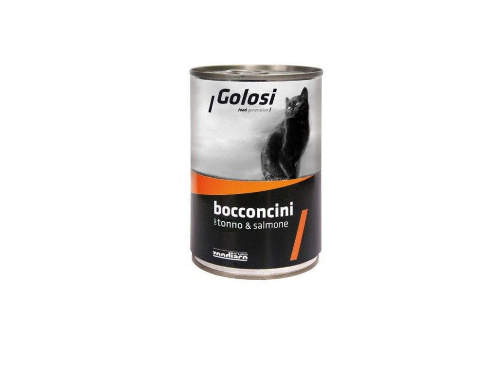 Golosi Bocconcini - tuniak s lososom s ryžou je kompletné krmivo pre dospelé mačky.Dodatočné parametre