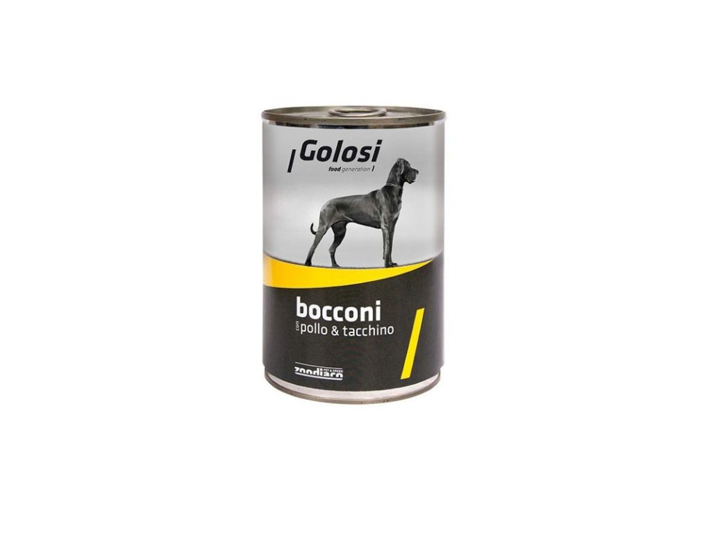 Golosi Bocconi - kuracie a morčacie s ryžou je kompletná strava pre dospelých psov.Dodatočné parametre