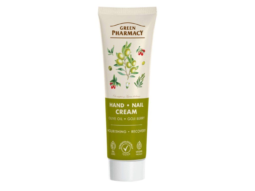 Green Pharmacy krém na ruky a nechty VÝŽIVA + REGENERÁCIA Olivový olej a goji Komplex 3 zložiek (včelí vosk + pantenol + alantoín) zabezpečuje 3 úrovne starostlivosti o pleť: chráni pred negatívnymi účinkami vonkajšieho prostredia, podporuje regeneráciu pokožky a udržiava ju hydratovanú. Olivový olej a extrakt z goji vyživuje a chráni pokožku pred vysušením a navracia jej mäkkosť a hebkosť. Keratín zabezpečuje starostlivosť o nechty.Dodatočné parametre