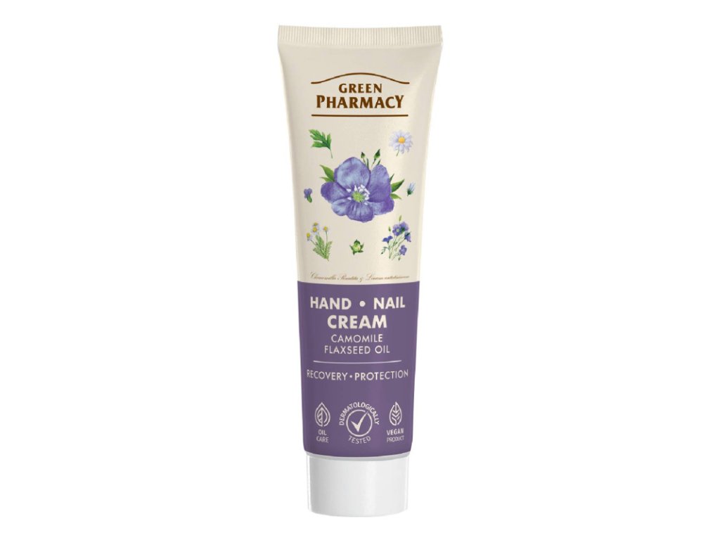Green Pharmacy krém na ruky a nechty REGENERÁCIA + OCHRANA Harmanček a ľanový olej Komplex 3 zložiek (včelí vosk + pantenol + alantoín) zabezpečuje 3 úrovne starostlivosti o pleť: chráni pred negatívnymi účinkami vonkajšieho prostredia, podporuje regeneráciu pokožky a udržiava ju hydratovanú. Extrakt z harmančeka a ľanový olej regenerujú poškodenú pokožku rúk a zjemňujú ju. Keratín zabezpečuje starostlivosť o nechty.