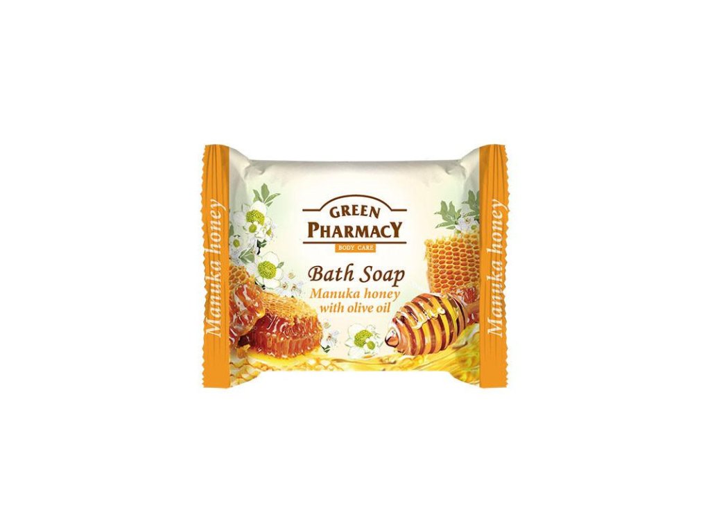 Jedinečné toaletné mydlo Green Pharmacy s prírodnými zložkami efektívne čistí, hydratuje, zvláčňuje pokožku a zlepšuje jej ochranné funkcie. Manuka med je jedným z najznámejších medicínskych medov s vysokými antioxidačnými vlastnosťami a mimoriadnou antibaktérialnou silou. Získava sa od včiel, ktoré zbierajú nektár večne zelených divokých kríkov a stromov palmínu metlatého, známy aj pod menom Tea Tree, domorodými obyvateľmi nazývaný Manuka vyskytujúci sa vo voľnej prírode na kopcoch a údoliach Nového Zélandu. Ide o jediný druh medu s niekoľko násobne vyšším obsahom tejto zložky (od 30 do 800 mg/kg) v porovnaný s bežným medom ( 3,1mg /kg). Mydlo s medom jemne čistí, hydratuje a zvláčňuje pokožku, zlepšuje jej ochranné funkcie. Manuka med má silný antibakteriálny účinok, a olivový olej zvlhčuje pokožku.Dodatočné parametre