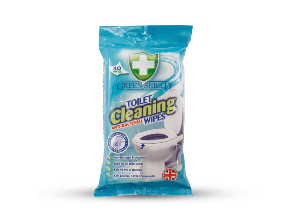 GREEN SHIELD čistiace utierky na čistenie toalety 40 ks Vlhčené utierky vhodné pre čistenie smaltovaných a umelohmotných povrchov Udržia vašu toaletu dokonale čistú jednoducho a rýchlo Utierky môžete po čistení pohodlne vhodiť do toalety a spláchnuť Utierky pre dokonalejšiu hygienu obsahujú antibacteriálnu prísadu Odstraňujú 99,9 % baktérií Balenie obsahuje 40 ks.Dodatočné parametre