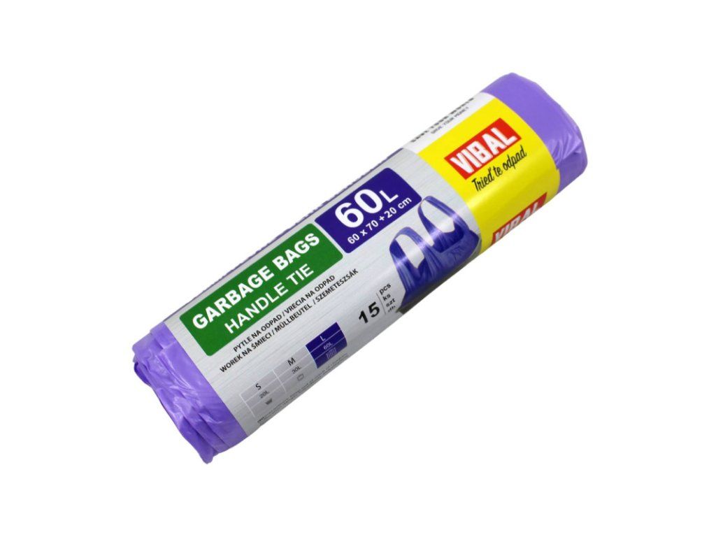 HDPE vrecia s uchom fialové 600x700/15 mic 60 L 15 ks 60 L vrecia čierne na odpad o hrúbke 15 μm. Ekonomický variant, hrúbka dostatočná na ľahší odpad. POUŽITIE: vrecia do košov na odpad balené 15 ks ROZMER 600x700 mm TVAR - rolované TYP: HDPE vrecia FARBA : fialová HRÚBKA: MM/MY0,015mm/15MY OBJEM/L 60 L Cena je za bal./15 ksDodatočné parametre