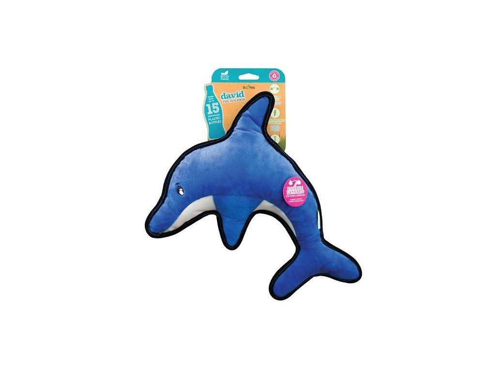 Hračka pre psa Beco Rough and Tough - Delfín David je hrubá a odolná hračka, ktorá počas hry vydrží žuvanie a zápasenie. Vyrobené z recyklovaných materiálov, opätovne využíva to, čo už tu je, dáva odpadu druhý život a zároveň podporuje jeho zber a opätovné použitie. Má interaktívny squeeker - piskátko.