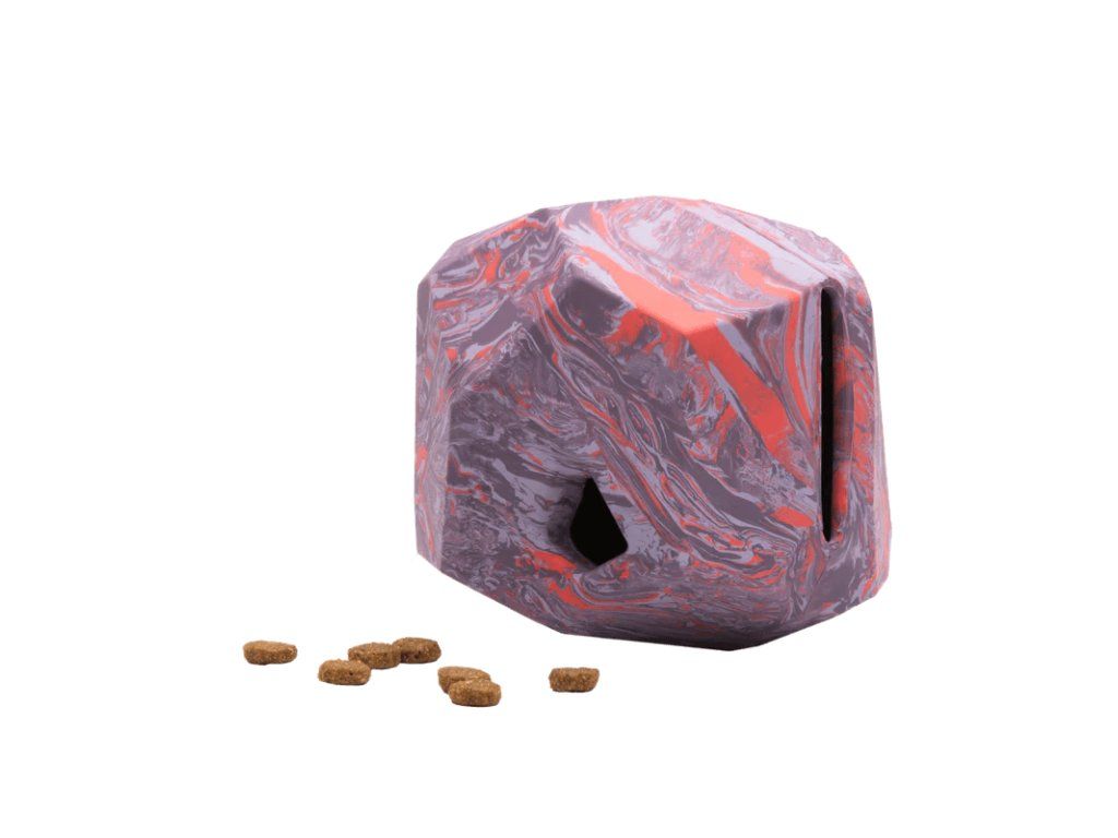 Vyzerá ako kus Obsidianového kameňa z lávových riek v okolí Oregonu, ale je to hračka pre psov- Gnawt-a-Rock ™! Táto odolná hračka je inšpirovaná prírodným vulkanickým sklom tvoreným rýchlo chladiacou lávou zo sopiek na severozápadnom pobreží Pacifiku. Na rozdiel od originálu, Gnawt-a-Rock je vyrobený z prírodného kaučuku, s fazetovým povrchom pre masírovanie ďasien. Jeho nepredvídateľný odraz pri dopade sa postará o extra zábavu a môžete do neho skryť maškrty pre interaktívnu hru s odmenou.
