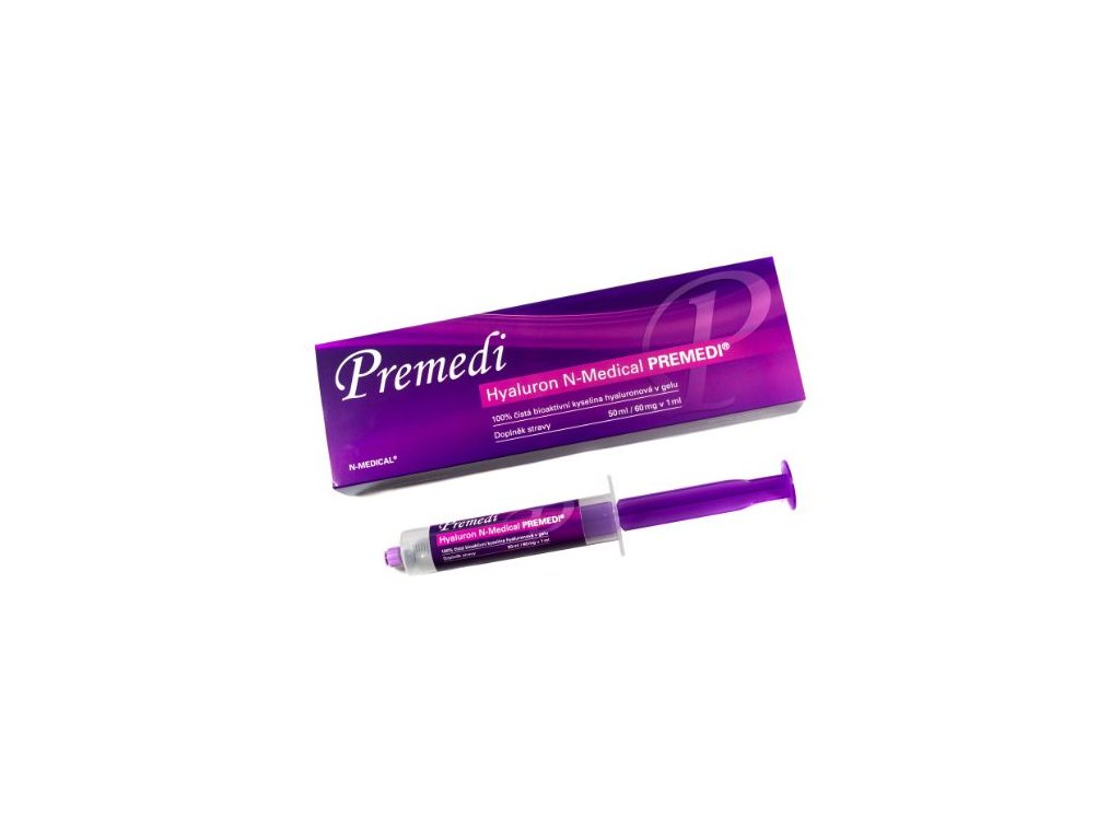 Hyaluron N-Medical PREMEDI je prvý originálny hydrofilný gél na vnútorné užívanie s obsahom až 60 mg/ml čistej bioaktívnej kyseliny hyalurónovej. Vďaka unikátnemu zloženiu a špičkovej kvalite surovín zo Švajčiarska patrí medzi špičku v oblasti estetickej medicíny a korektívnej dermatológie. Gél je určený na vnútornú hydratáciu organizmu, podporu regenerácie tkanív, zlepšenie elasticity pokožky a celkovú výživu zvnútra – tzv. inside-out® efekt.