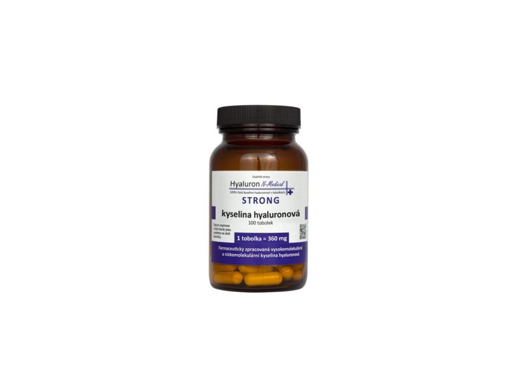 Hyaluron strong N-Medical 100 kapsúl Ak si zakúpite tento produkt, získate ako darček pozlátené náušnice Swarovski úplne zadarmo! Hyaluron strong N-Medical 100 kapsúl je prémiový doplnok stravy, ktorý prináša revolučný prístup k starostlivosti o zdravie a krásu zvnútra. Obsahuje 360 mg 100 % čistej bioaktívnej kyseliny hyalurónovej v každej kapsule – unikátne spojenie vysokomolekulárnej a nízkomolekulárnej formy zaisťuje maximálnu vstrebateľnosť a účinnosť. Prípravok je vyvíjaný a vyrábaný v súlade s prísnymi štandardmi správnej výrobnej praxe v Hradci Králové (Česká republika). Kyselina hyalurónová je známa svojou schopnosťou viazať vodu – dokáže na seba naviazať až tisícnásobok svojej hmotnosti. Výsledkom je hĺbková hydratácia pokožky, tkanív a kĺbov, zlepšenie elasticity pleti, redukcia jemných vrások a podpora celkovej vitality organizmu. Vďaka pôsobeniu inside-out® hydratuje organizmus zvnútra, čím prispieva k zdravšiemu vzhľadu a lepšiemu pocitu. Benefity: podpora hydratácie pleti a zníženie prejavov starnutia, zlepšenie pohyblivosti kĺbov a regenerácie tkanív, posilnenie zdravia vlasov, nechtov a pokožky, pomoc pri komplikovanejších stavoch spojených s nedostatkom kyseliny hyalurónovej. Dávkovanie: Užívajte 1–3 kapsuly denne, najlepšie pred hlavným jedlom. Zapite dostatočným množstvom vody. Skladovanie: Skladujte na chladnom a suchom mieste. Chráňte pred priamym slnečným svetlom, teplom a vlhkosťou. Udržujte mimo dosahu detí. Výrobok starostlivo zatvorte po každom použití. Upozornenie: Nie je určené pre deti, tehotné a dojčiace ženy. Neprekračujte maximálnu odporúčanú dennú dávku. Výživové doplnky nenahradzujú pestrú a vyváženú stravu. Dbajte na pestrú stravu a zdravý životný štýl. Neužívajte pri neznášanlivosti na jednotlivé zložky. O značke: N-Medical s.r.o. je česká farmaceutická firma, ktorá vznikla v roku 2016. Špecializuje se na vývoj, výrobu, distribúciu a predaj vlastných produktov pre estetickú medicínu a korektivnú dermatológiu. Suroviny pre výrobu nakupuje po celom svete a vyberá tie najkvalitnejšie, aby jej produkty boli špičkou vo svojej kategórii. Výroba prebieha v Českej republike za podmienok správnej výrobnej praxe (GMP). Produkty N-Medical sú dodávané do lekární, ordinacií lekárom, na kliniky estetickej medicíny a do kozmetických salónov. Hlavné motto firmy je, že vyzerať dobre a cítiť se skvelo je jeden z hlavných predpokladov pre šťastný a naplnený život. Produkty N-Medical sa predávajú vo viac ako 10 krajinách.Dodatočné parametre