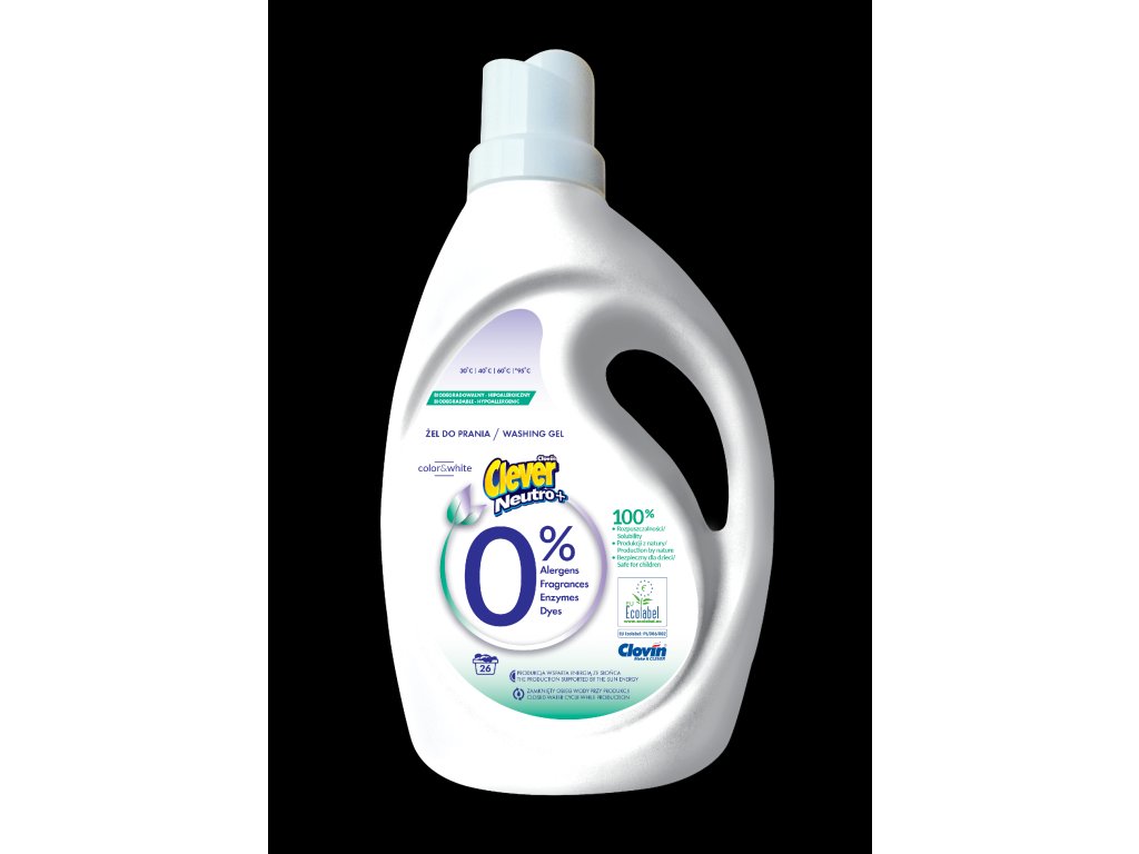 Hypoalergénny prací gél Clever Neutro+ Color& White 1,56L/26PD - s 0% obsahom agresívnych látok a certifikátom ECOLABEL Vhodné pre deti