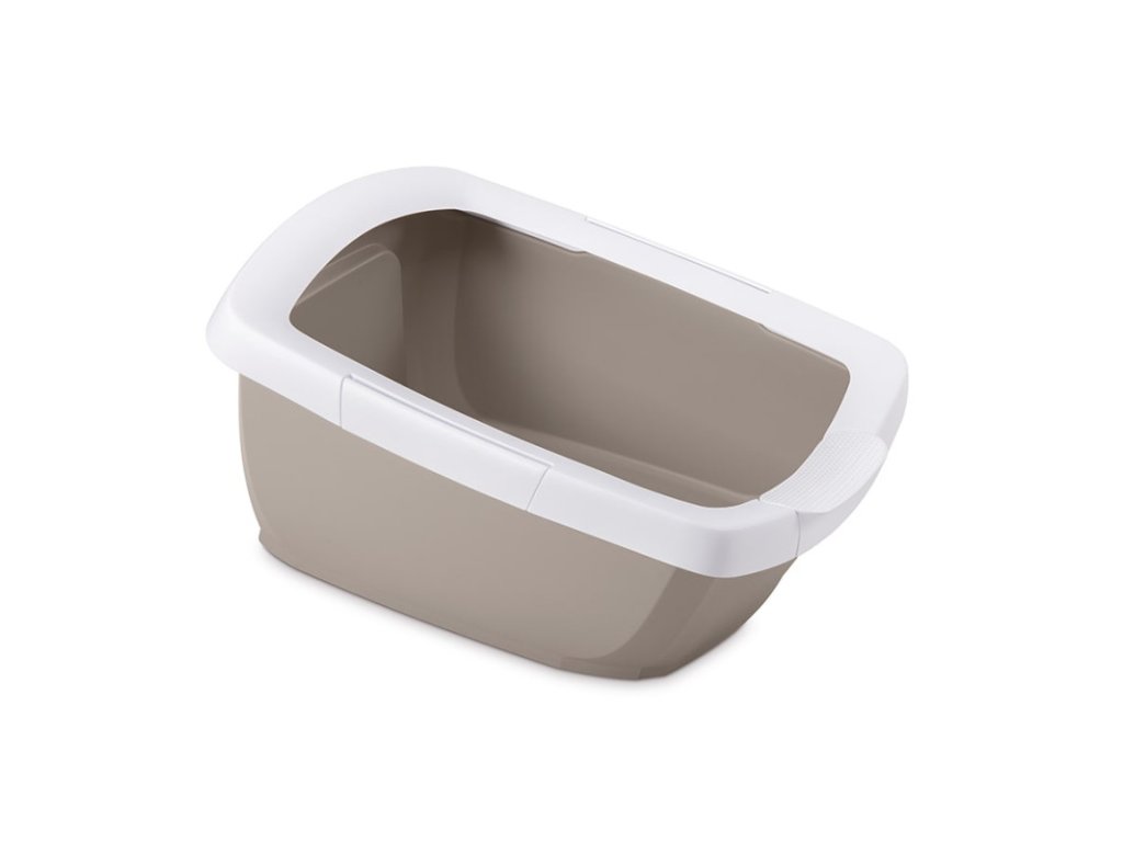 Otvorená toaleta pre dospelé mačky s vyvýśenou zadnou stranou.