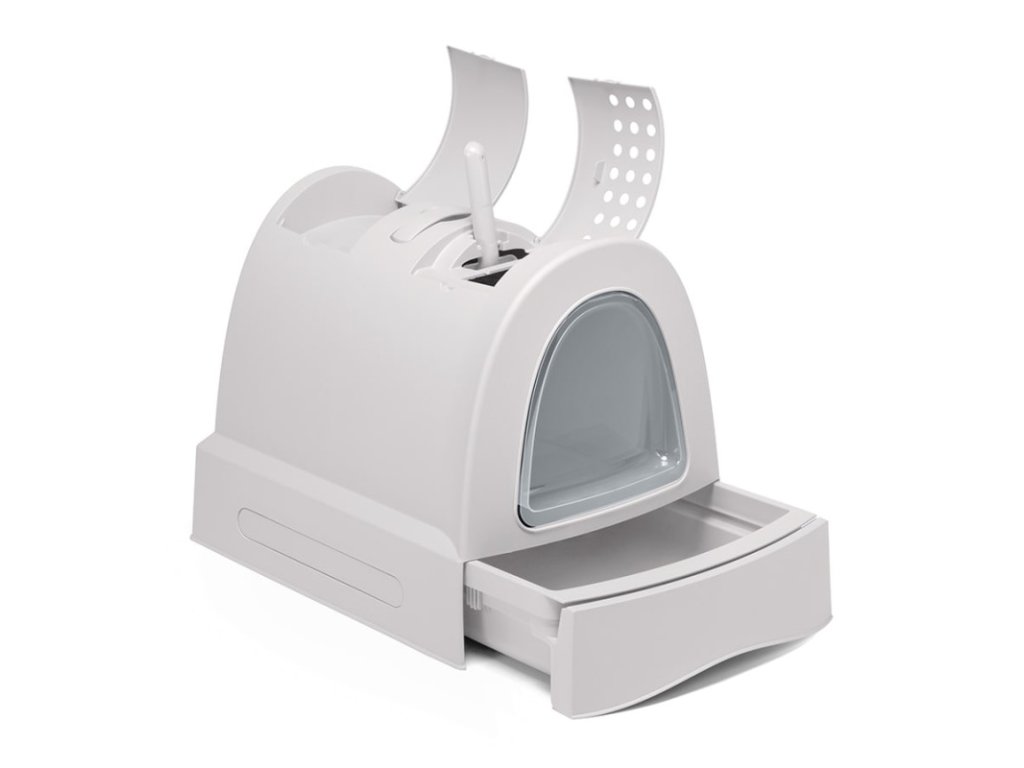 Toaleta pre mačky s výsuvným šuplíkom, lopatkou a filtrom.