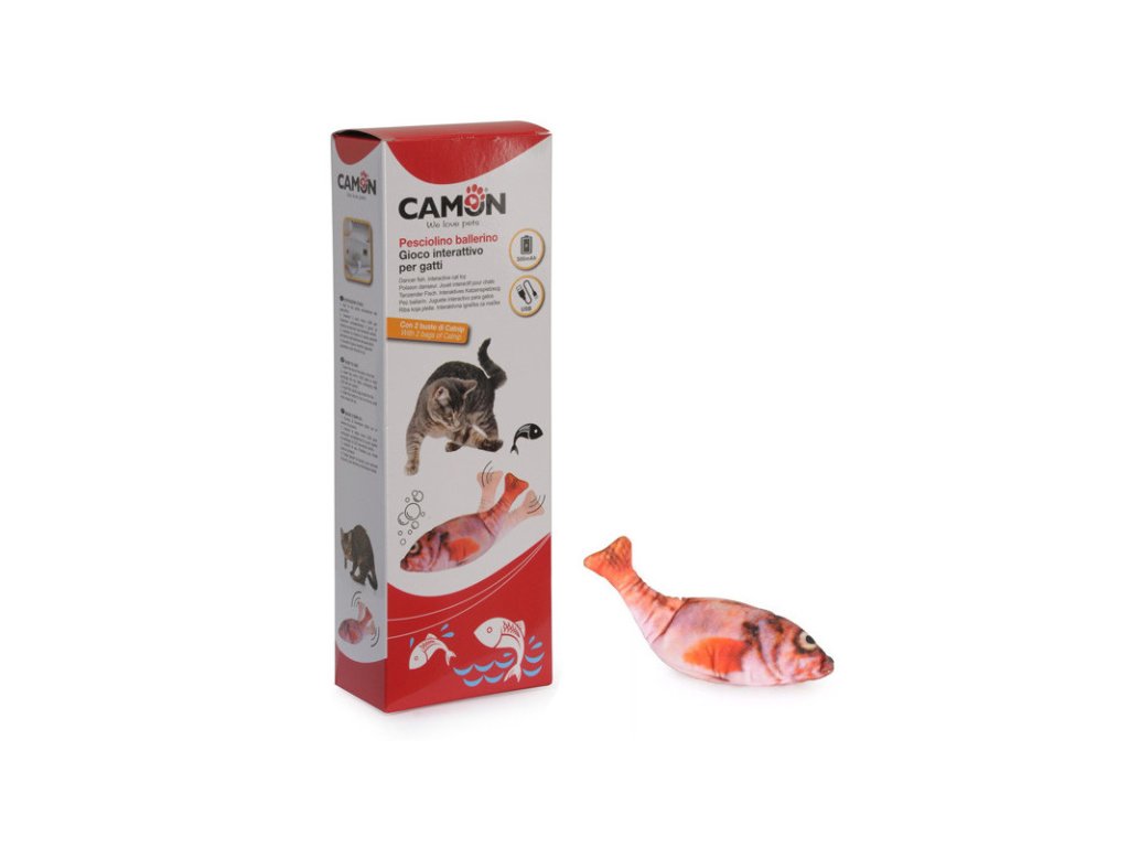 Interaktívna hračka pre mačky Camon v podobe pleskajúcej sa ryby preverí odvahu a lovecké inštinkty Vašej mačky. Pohybujúca sa ryba je veľkým lákadlom pre všetky statočné mačky.Dodatočné parametre