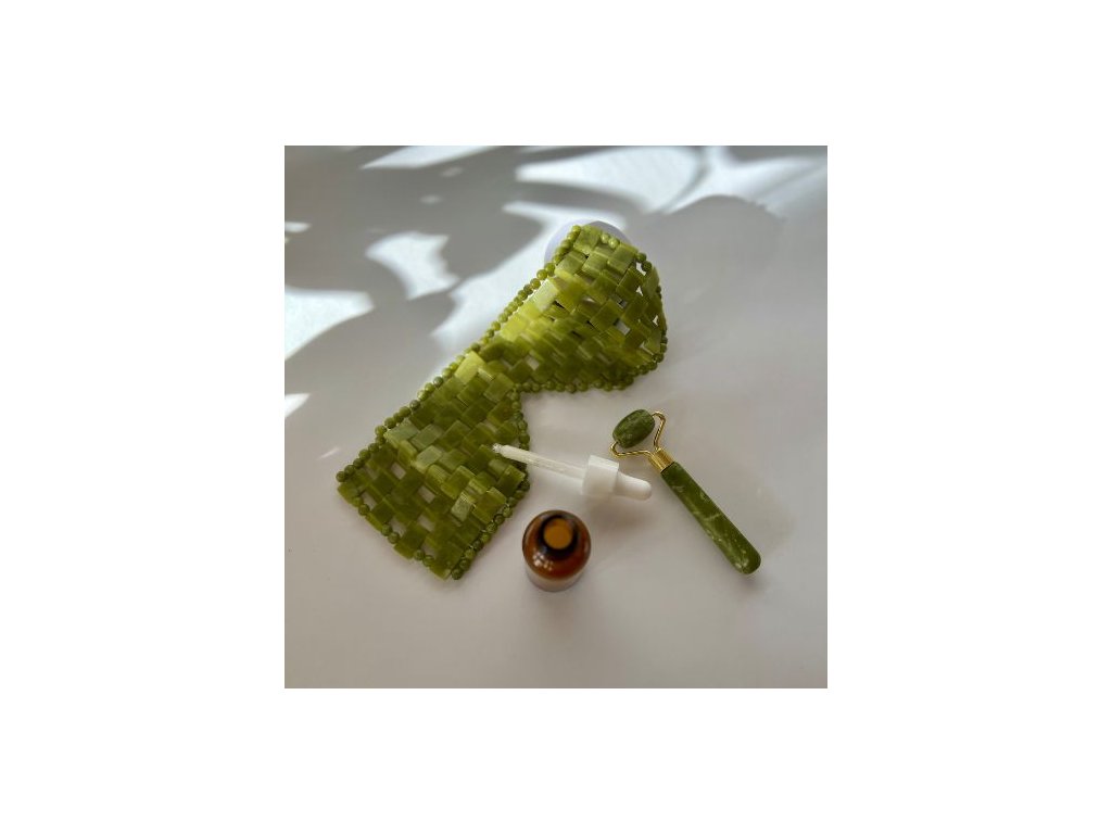Našu masku môžete začleniť do svojej každodennej starostlivosti o pleť. Pre dosiahnutie optimálneho účinku odporúčame pred použitím umiestniť masku do chladničky, čo ešte zvýši chladivý efekt jadeitového kameňa. Vždy aplikujte masku na predtým očistenú pleť. Pred použitím môžete použiť váš obľúbený krém alebo sérum, čím ešte zintenzívnite ich účinky. Položte masku na pripravenú tvár a nechajte ju pôsobiť 10 – 20 minút podľa vlastných preferencií. Maximálny relax dosiahnete, ak budete počas pôsobenia masky relaxovať na chrbte. Týmto spôsobom môžete nielen uvoľniť svoju tvár, ale aj upokojiť myseľ. Po použití masku opláchnite a uložte na ďalšie použitie. Užívajte si príjemné chvíle starostlivosti o svoju pleť s našou jedinečnou jadeitovou maskou.