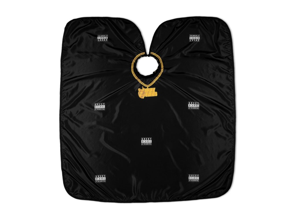 Barber plášť ANGRY BEARDS v štýlovom čiernom dizajne. Chráni zákazníka pred vlasmi a prebytočnými tekutinami. Rozmery kaderníckej zástery sú 154 x 138,8 cm.