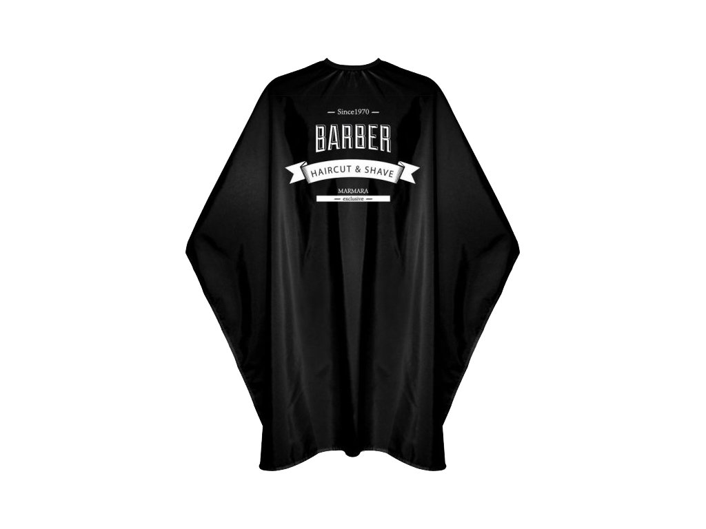 Klasický plášť pre zákazníka s logom značky MARMARA Barber v čiernej farbe určený na strihanie či holenie. Praktické stiahnutie pomocou gumičky a zapínanie na háčik. Svojím originálnym dizajnom sa hodí hlavne do barbershopu či holičstva.