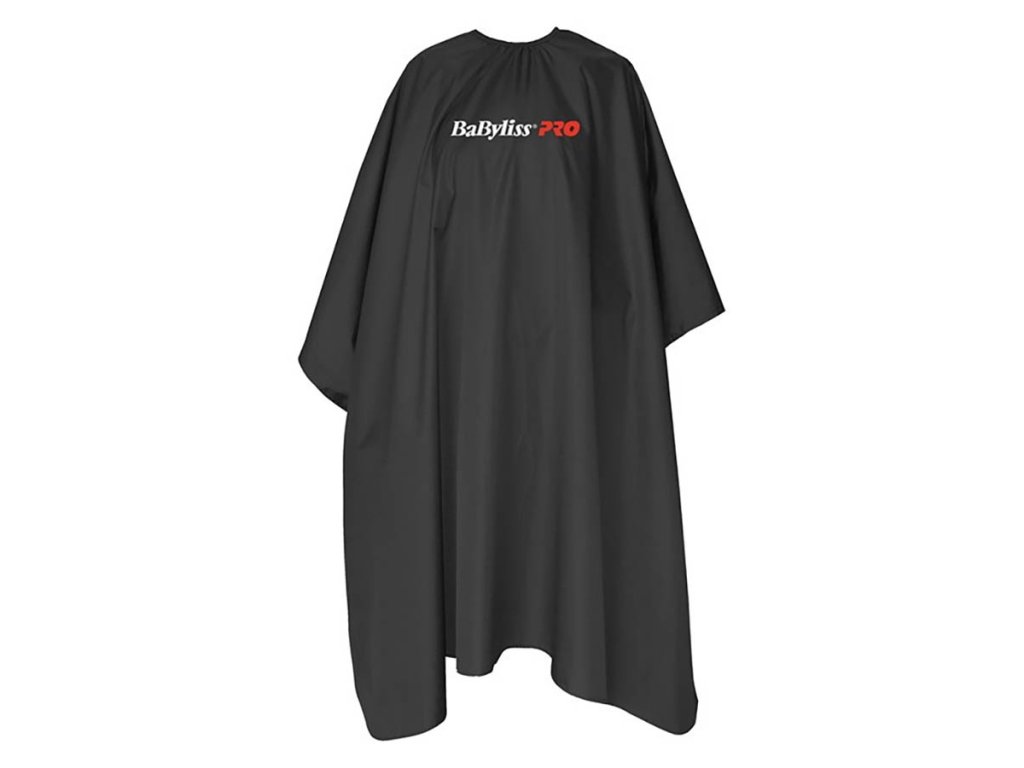 Profesionálna kadernícka pláštenka na strihanie BABYLISS PRO v čiernej farbe s logom značky na prednej strane. Pláštenka má zapínanie na cvoky a praktické pútko na zavesenie. Rozmery pláštenky sú 110 x 140 cm.