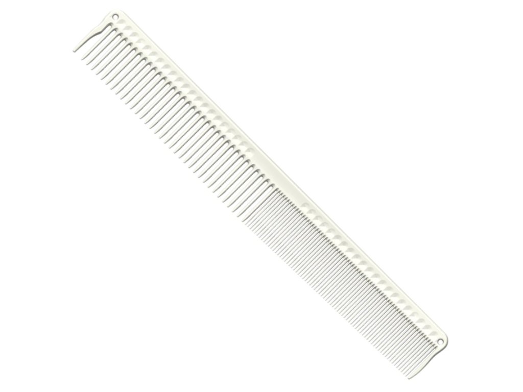 Profesionálny segmentačný hrebeň od značky JRL v bielej farbe s dĺžkou 8,6″ (21,8 cm) špeciálne navrhnutý na rozdeľovanie sekcií a strihanie vlasov. Je vyrobený z kvalitného, ľahko ohybného, ale pevného plastu s tepelnou odolnosťou až 240°C. Má patentovaný vroubkovaný dizajn zubov, ktorý pomáha zdvihnúť vlasy.Dodatočné parametre