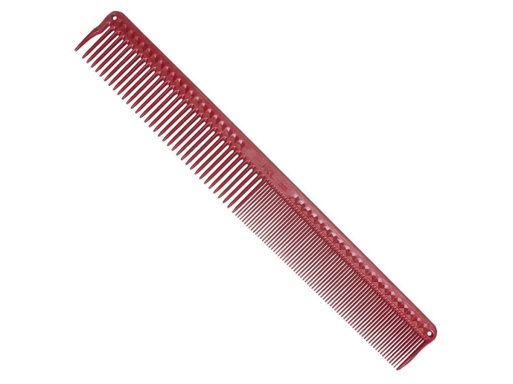 Profesionálny segmentačný hrebeň od značky JRL v červenej farbe s dĺžkou 8,6″ (21,8 cm) špeciálne navrhnutý na rozdeľovanie sekcií a strihanie vlasov. Je vyrobený z kvalitného, ľahko ohybného, ale pevného plastu s tepelnou odolnosťou až 240°C. Má patentovaný vroubkovaný dizajn zubov, ktorý pomáha zdvihnúť vlasy.