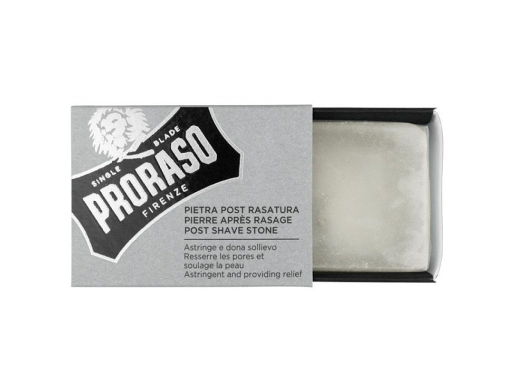 Kamenec PRORASO znižuje začervenanie, upokojuje a dezinfikuje pokožku a okamžite hojí rany spôsobené holením.