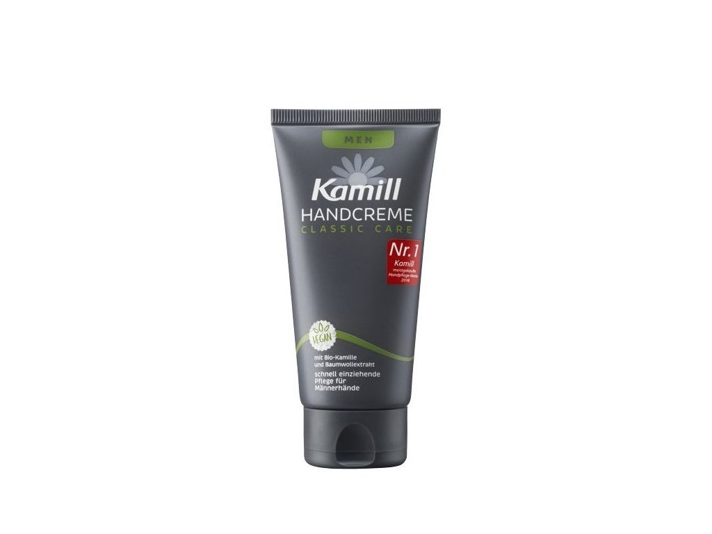 VEGAN výrobok - certifikované v Nemecku NOVINKA NA TRHU Kamill krém na ruky pre mužov je bohatý krém s bavlnou a výťažkom z organického BIO harmančeka, ktorý pokožku hydratuje a intenzívne chráni pánske ruky. Krém sa rýchlo vstrebáva, nezanecháva mastný film a pokožka sa stáva hladkou a pružnou. Benefity a hlavné prednosti: Neobsahuje farbivá ani parabény Žiadne živočíšne produkty ani prísady VEGAN certifikácia v Nemecku Bez minerálnych olejov/parafínu Bez emulgátorov PEG Dermatologicky testované Tradičná kvalita z NemeckaDodatočné parametre
