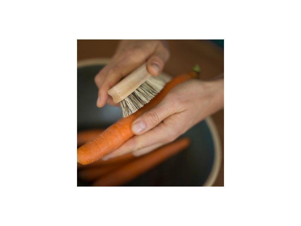 Kefa na zeleninu Tierra Verde 1ks „Príroda na dosah – šetrná starostlivosť o zeleninu s našou drevenou kefkou!“ Vlastnosti: Prírodné materiály: Kefa je vyrobená z PEFC certifikovaného dreva, čo zaručuje, že drevo pochádza zo zodpovedne obhospodarovaných lesov. Štetiny sú z prírodných vlákien agáve a lontaru. Dvojitá funkcia: Tvrdšie štetiny sú určené na dôkladné čistenie tvrdších druhov zeleniny, jemnejšie na hladké a krehké povrchy. Ekologická: Po doslúžení ju môžete ekologicky zlikvidovať – skompostovať alebo spáliť v krbe. Odolná a dlhotrvajúca: Vysokokvalitné materiály zaručujú, že kefka vám vydrží dlhý čas. Univerzálna: Môže sa použiť nielen na čistenie zeleniny, ale aj na jemné čistenie ovocia alebo iných kuchynských povrchov. Použitie: Použite tvrdšie štetiny na dôkladné čistenie koreňovej zeleniny, ako sú zemiaky, mrkva alebo paštrnák. Jemnejšie štetiny použite na citlivejšiu zeleninu alebo ovocie, ako sú paradajky či jablká. Po použití kefku opláchnite teplou vodou a nechajte ju vyschnúť, aby si zachovala svoju kvalitu čo najdlhšie. Ak kefka doslúži, jednoducho ju skompostujte alebo pridajte do krbu ako ekologický materiál. Tip:Keď sa kefa opotrebuje, jej jednotlivé časti sú úplne biologicky odbúrateľné a nezaťažujú prírodu.Dodatočné parametre