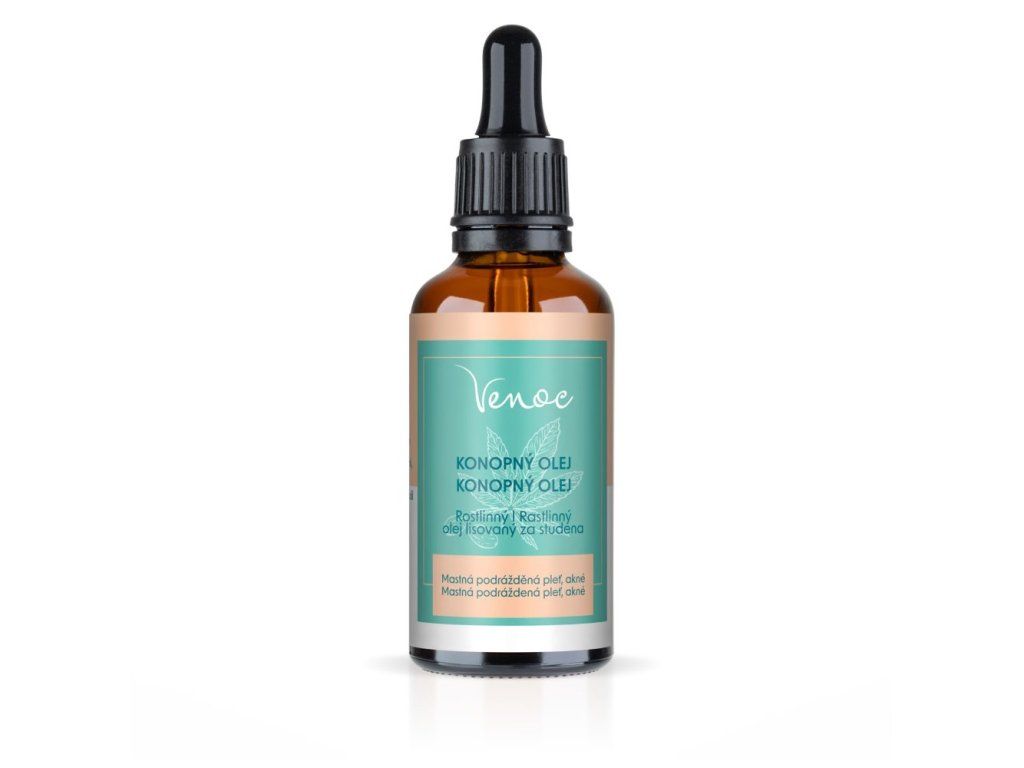 Konopný olej Venoc 50ml Konopný olej Venoc je 100 % prírodný pleťový olej lisovaný zo semien rastliny Cannabis sativa. Vyniká svojou schopnosťou regulovať tvorbu kožného mazu, upokojovať podráždenie a podporovať obnovu pokožky, vďaka čomu je mimoriadne vhodný pre mastnú, aknóznu a zápalmi zaťaženú pleť. Je výnimočne ľahký, nekomedogénny a rýchlo sa vstrebáva bez pocitu mastného filmu. Jeho účinnosť stojí na vysokom obsahu omega-3 a omega-6 mastných kyselín, najmä kyseliny linolovej, ktorá je mimoriadne prospešná pre problematickú pleť. Pomáha zlepšovať funkciu kožnej bariéry, redukuje začervenanie a podporuje zdravší, rovnomerný vzhľad. Vďaka prirodzeným antioxidantom chráni pleť pred poškodením a urýchľuje jej regeneráciu. Výhodou konopného oleja je jeho univerzálnosť – okrem pleti tváre je vhodný aj na starostlivosť o problematickú pokožku tela, suché miesta alebo podráždenú pokožku hlavy. Olej je vyrobený z bio surovín najvyššej kvality, šetrne spracovaných tak, aby si zachovali maximum účinných látok. Benefity konopného oleja Venoc reguluje tvorbu kožného mazu, upokojuje podráždenie a začervenanie, podporuje hojenie problematickej a aknóznej pleti, posilňuje kožnú bariéru, rýchlo sa vstrebáva a nezaťažuje póry, dodáva pleti výživu a vláčnosť, pôsobí antioxidačne a chráni pleť pred poškodením, vhodný aj na pokožku tela a vlasov. Použitie Aplikujte niekoľko kvapiek oleja na čistú, mierne navlhčenú pleť a jemne vmasírujte. Používajte ráno aj večer samostatne alebo pridajte do obľúbeného krému pre zvýšenie výživy. Olej je vhodný aj na ošetrenie aknóznej pokožky na chrbte či dekolte a na upokojenie suchej alebo citlivej pokožky hlavy. Pri mastnej pleti odporúčame používať malé množstvo a aplikovať lokálne tam, kde je pleť najviac problematická. Upozornenie Len na vonkajšie použitie. Zabráňte kontaktu s očami. Uchovávajte mimo dosahu detí. Skladujte na suchom a tmavom mieste.Dodatočné parametre