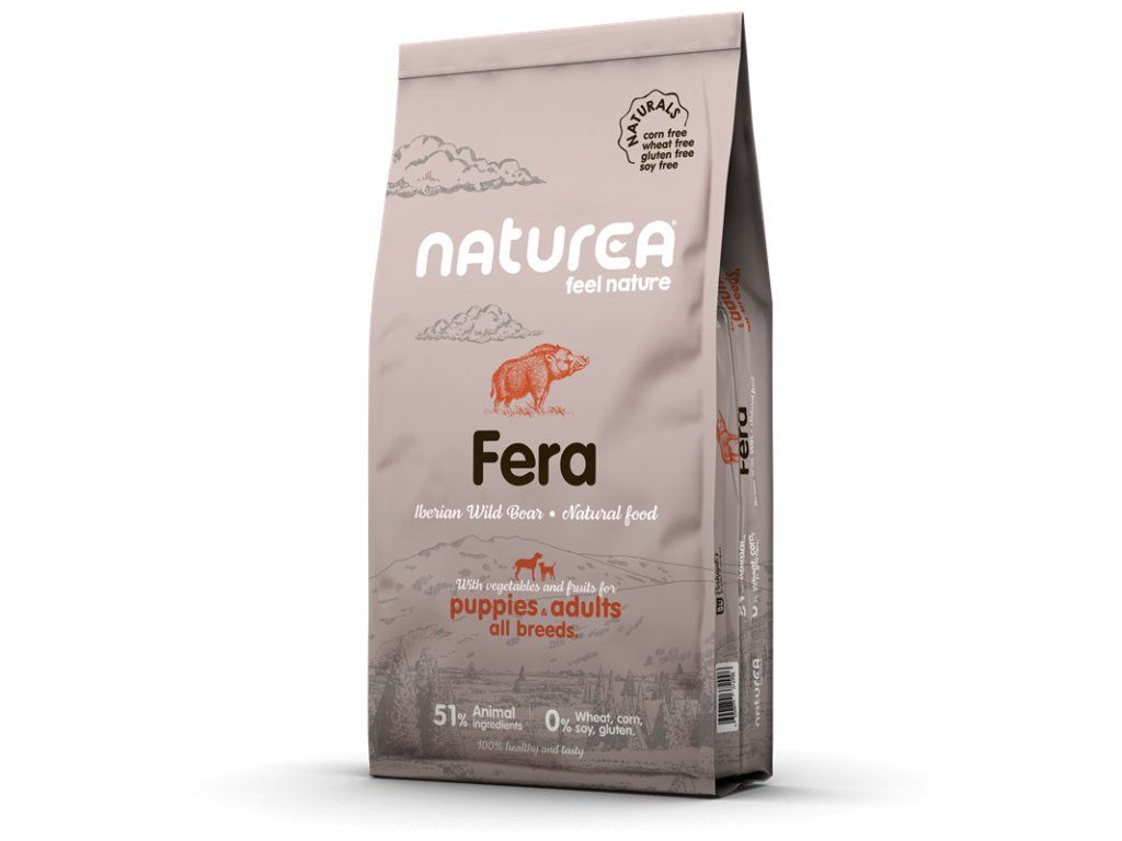 Krmivo pre psy Naturals Fera Iberian Wild Boar dodržiava koncepciu Naturally Appropriate (prirodzene vhodné). Diviak je aj dnes hlavnou súčasťou potravy vlkov žijúcich vo voľnej prírode a tak hlavnou zložkou receptury tohto krmiva je vykostené, čerstvé kančie mäso. Je to mäso s množstvom chuti, ktoré je zdravé a zároveň má nízky obsah tuku. Receptúra tiež je bohatá na základné živiny, ako je sodík, draslík a vitamíny B12 a B13.